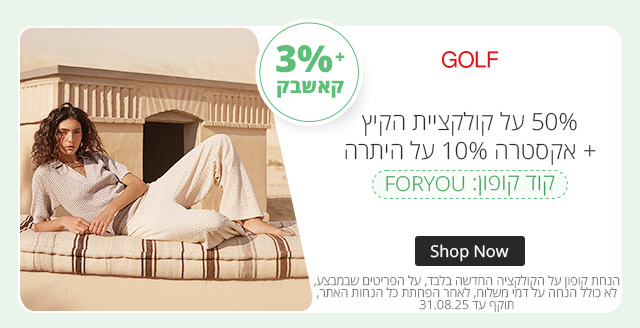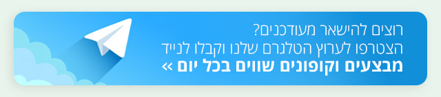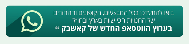 זוהי פניה בדיוור ישיר שנעשית אליך בהתאם לרישומך במאגר מידע רשום שמספרו 700062169, אשר בבעלות חברת קאשבק אונליין בע"מ, לאחר שנרשמת לאחד משירותי החברה. ככל שתבקשו שלא לקבל דואר אלקטרוני נוסף, אנא לחצו על הקישור הבא: להסרה מהרשימה או ע"י שליחת הודעת הסרה לכתובת support@cashback.co.il. מענה למייל זה לא יביא להסרה מרשימת התפוצה.